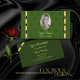 YOUR FAVORITE - Make a lasting impression with this elegant and luxury business card design featuring shimmery golden decor borders and oval frame with your (employees-) photo. On the front matching monogram pattern on a forest green background and the back is dark forest green.