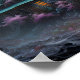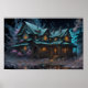 Introducing our captivating poster print, "Forest Haven: Tranquil Cabin Retreat." Immerse yourself in the serenity of nature as you behold a picturesque scene where a charming two-story cabin is nestled amidst a vibrant forest. The teal blue and pink coloured trees create a whimsical backdrop, and the starry night sky adds a touch of enchantment to this tranquil retreat.