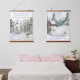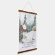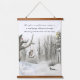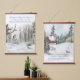 Hanging tapestry with winter watercolor nature scene which you can customise with your own wording or, delete the sample text if no wording is required. The designs feature snowy woodland forests with a duck swimming on the lake. One has a country cabin and slet whilst the other has an owl on a tyre swing.