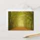 Postcard with light at the end of a tunnel by beech trees along a lane through the forest.