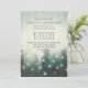 Rustic wedding invitation with spruce trees decorated with fairy lights.