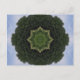 Digital mandala created using a photograph of a forest against a bright blue sky.