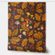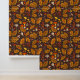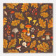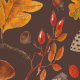 Forest mushrooms and autumn flora on brown wallpaper