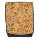 Forest mushrooms and autumn flora on ochre backpack