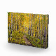 “Beautiful scenic autumn grove of aspen trees with hiking and mountain biking trails on the Kenosha to Breckenridge trail in Colorado, from an original impressionistic fine art oil painting by Daniel Fishback."