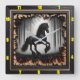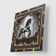 Experience the enchanting beauty of nature and artistry with our exquisite wall clock featuring a stunning image of a black Friesian horse gracefully cantering through a foggy forest. This captivating scene is elegantly framed by a ½-inch flat black wooden border, which enhances the overall aesthetic while providing a sturdy and stylish foundation. The clock's embedded wood showcases deep carvings with a charred, textured grain, adorned with rugged burn marks in shades of red, grey, and black, creating a striking contrast against the lighter wood. This unique design not only serves as a functional timepiece but also as a mesmerising piece of art that brings the tranquillity of the forest into your home.