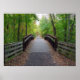 Photograph of a foot bridge on a path through a late summer forested landscape. Quiet and peaceful. Also available as a modified photograph to resemble a painting.