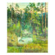 watercolor on silk - manual equipment; landscape summer small river in the forest