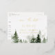 Elegant Watercolor Forest Pine Tree scene, foil save the date postcard.