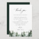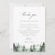 Elegant watercolor forest pine trees, Wedding reception thank you table card. Template provides multiple lines for your custom thank you message. Features, black typography on coordinating green and white backgrounds.