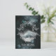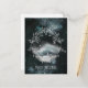 A winter forest scene with lightly falling snow is tucked within a holiday wreath with leaves of aqua and grey. This vignette is set on a darker, almost moody-feeling background in shades of blue-green. The snowfall theme is continued on the background, creating a Christmas card that embodies the idea of a silent night in a magical winter forest. The greeting on front of the card says "Merry Christmas" and you can easily revise this text and all text on the back of the postcard on the Personalisation template. Part of our Forest Snowfall Christmas Collection.