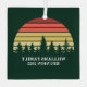 Cool customizable family reunion keepsake Christmas ornaments in green for the whole group on a nature outing or camping trip. These custom commemorative vacation gifts feature a beautiful vintage sunset over a forest of pretty trees under your personalized text. Great ornament for a log cabin.