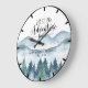 Forest Watercolor Mountains Newlyweds Wedding Large Clock
