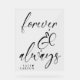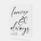 Add a timeless touch to your special day with this "Forever and Always" personalised wedding sign. Featuring elegant typography and space to customise with your names, this sign makes a beautiful addition to your ceremony entrance, reception décor, or sweetheart table backdrop.