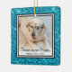 This lovely dog memorial photo ornament with an aqua glitter edge, the words "Forever in our Hearts", your dog's name and its years living will look beautiful on your tree. You'll cherish it just as you cherish your memories of your beloved dog who passed away.