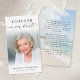 These personalized memorial prayer cards are a comforting way to honor a loved one whose memory lives on. The front features a softly faded photo paired with elegant “Forever in Our Hearts” script, while the reverse showcases a peaceful beach scene with an editable heartfelt remembrance message that speaks of love, light and enduring connection. Designed for funerals, memorial services or Celebration of Life gatherings, these customizable cards offer family and friends a meaningful keepsake to cherish long after the service has ended. Its small and portable size of 3.5x2" (wallet-sized) makes it convenient to carry as a reminder of their life and spirit. Personalization makes each card unique.