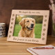 Honor the memory of your beloved companion with this elegantly crafted wooden frame. Designed to hold a cherished portrait, it features a warm, natural finish and delicate engraved paw prints that frame your favorite moment.