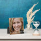 Simple photo memorial plaque easel of a loved one who has sadly passed featuring a photograph, the text "Forever in our Hearts", two white hearts and the dates. Beautiful keepsake for friends or family to keep in their memory.