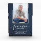 A clear acrylic block remembrance keepsake features a photo of your loved one, their name, and birth-death dates with "Forever in our Hearts" in chic lettering on a blue jean denim background. MATCHING items in our collection.