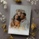 Photo adoption announcement with gold foil fonts, a heart divider, and the date your adoption went through in gold foil on a photo of you and your family. Add your adoption story on the back beneath another photo.
