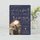 Forever has a nice ring to it, Modern script photo arch faux gold foil and navy blue engagement announcement with an engagement ring illustration. All the colours are editable.