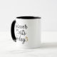 If you know someone getting married, do yourself and them a favor by ordering this mug. Never have I been so excited to have something. Especially looks good in Christmas morning pajama pictures :). Fabulous! The colors and font are pristine. Also love this is dishwasher safe.
