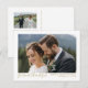 Elegant mult-photo wedding thank you postcard design features two (2) spaces for wedding day photos with custom "forever thankful", monogram, and thank you message that can be personalised on the front and back.The antique gold text colour and white background colour can be modified to coordinate with your photos. Photo filters are available via customise.