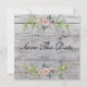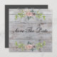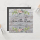 This wedding design features delicate floral borders on a rustic country barnboard background. The romantic design is perfect for a spring or summer wedding and the subtle use of flowers adds a touch of elegance to the overall look.