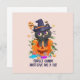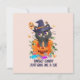Skip the sweets and go straight for the purrs with this adorable Halloween greeting card featuring a black witch cat perched on a glowing jack-o’-lantern, surrounded by bright, colourful candies and the playful phrase “Forget Candy Just Give Me A Cat.” A perfect mix of spooky and sweet, this design is ideal for cat lovers who’d trade treats for whiskers any day.