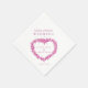 Forget me not flowers in a heart wreath botanical ink drawing and watercolor wash in pink on white wedding napkins. Add your own couple's name and wedding date in a classic rich dark ruby pink text. Other colours and matching wedding items available. © Original ink drawing and watercolor wash art and design by Sarah Trett for www.mylittleedenweddings.com on Zazzle.