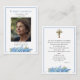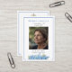 An elegant memorial photo funeral memorial prayer cards featuring symbolic blue forget-me-not flowers. You can customisze with your chosen prayer, psalm or poem. Elegant small blue flowers on simple white background. Makes great keepsake.