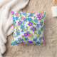 Original fine art design of colourful blue and pink Forget Me Not garden flowers by artist Carolyn McFann of Two Purring Cats Studio printed on a quality and customisable American Mojo brand pillow for all who love Forget Me nots.