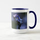 Macro photograph of forget-me-not flowers on 15oz blue ringer mug.