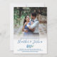 A floral photo wedding invitation with the invitation text written in blue atop a white gradient at the bottom of your photo. Your names and the details are separated by an twig of forget-me-nots. Add your own photo to the floral wedding invitation. The back features a pretty flower pattern of blue forget-me-nots.