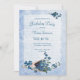 A birthday party invitation of a sentimental bouquet of forget me not flowers wrapped in a paper cone and blue ribbon. (Pix). The card is easy to customise with your wording, font, font colour and choice of six paper types.<br/><br/>Not exactly what you're looking for? All our products can be custom designed to meet your needs at no extra charge.<br/><br/>Simply contact us at askcottonlamb@gmail.com<br/><br/>Coordinating products available: