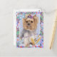 Encourage a friend or dog lover who has lots a Yorkshire Terrier pet when you send a postcard, greeting card or note card a "Forget Me Not" card by Friskybizpet Designs. Beloved Yorkie is framed in symbolic Forget-Me-Not flowers.