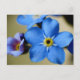 This item features a macro photograph of delicate blue and yellow forget-me-not blossoms, captured in late afternoon sunlight during springtime.