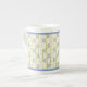 This delightful fine bone china mug features Leslie Sigal Javorek's original digital painting of sweet, dainty perwinkle blue forget-me-not flowers with spring green stripes and polka dots on a warm ivory are perfect for settling down w/a nice cup of tea.