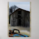 An AI Fantasy Digital Art Print set in the countryside, a rural rustic shed and car, forgotten about years ago, now sit there watching the seasons come and go.