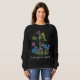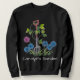 A lovely warm, black sweatshirt to wear while gardening, with hand drawn art in a colourful doodle cartoon style, of a garden fork and flowers. You can add your name and / or words below.