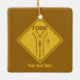 This design has a funny road traffic sign warning of a fork in the road. Is a metaphor for a time in your life when you have to make a decision that might change the direction you are travelling or going with your life. A square sign with a road and a fork.