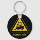 Triangle shaped yellow warning sign. Warning: Fork lift trucks and other industrial vehicles. Custom background colour. Custom text on both sides.
