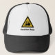 Triangle shaped yellow warning sign. Warning: Fork lift trucks and other industrial vehicles. Custom text.
