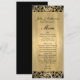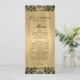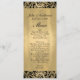 Long and skinny golden wedding table menu done, with graphics of a lacy gold pattern over a black edge, along the top and bottom. Personalise the black text for your special day. Lovely addition to our Formal black and Gold wedding set.