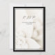 A Formal Black and White with RSVP Wedding Invitation for your special day. Designed on a black front with white text this invitation includes: The Bride and Groom's Names, Wedding Date, Time, Location, Address and Reception Details. The reverse side text includes your RSVP Details, on a soft white floral background and black border. To personalise, simply insert your event text into our easy template, replacing the sample. Be sure to view the complete formal Black and White With RSVP Wedding Collections for matching cards and accessories.