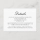 This classy formal wedding details enclosure card features the title in elegant black script and the text in small capital fonts in black on a white background. The reverse is solid black.