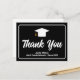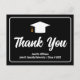 This formal black and white custom graduation postcard features classy handwritten thanks above your high school or college name for the class of 2025. Customise with your name under the grad cap for great personalised modern graduate thank you cards.