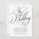 Formal sophisticated black tie romantic script simple minimal black and white wedding invitation. Suitable for spring summer fall or winter elegant classic traditional weddings.