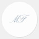 Formal Classic Monogram Dusty Blue White Wedding Round Sticker