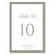 The Formal Classic Sage Green Border Script Wedding Table Number brings timeless elegance to your reception. Featuring a refined sage green border and classic script typography, this design is perfect for spring and summer weddings, adding a sophisticated touch to your table décor.